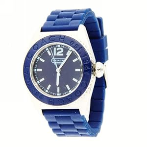 Coach women's watch 14501377. Boyfriend Andee collection. Blue silicone strap with blue dial and blue time markers. Stainless steel case.