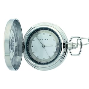 Colibri pocket watch, silver tone case, 47mm, quartz movement, white dial with silver, silver hands, mineral crystal, includes pocket watch chain.