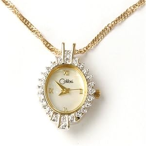 She will adore this Colibri CZ diamond watch pendant with gold tone chain presented in a heart shaped wood keepsake box. The oval shaped pendent features CZ diamonds surrounding pendent with a delicate chain. The watch pendant features a mother-of-pearl dial with roman numerals. This necklace is truly memorable gift set that she will always remember. Mfg. Limited Warranty. Great Gift Set!