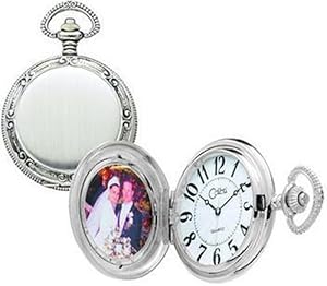 Colibri of London set comes complete with Pocket Watch Antique design, Photo Frame Inside and chain in Wooden Box. This unique pocket watch has a a space to place a personal photo of a wedding or a special person or occasion. The personalized photo frame watch is easy to install and requires no tools. This hunting case pocket watch features brushed stainless case with design on cover, quartz movement, large esay to read numbers and white patterned dial. Can be engraved front or back. Pr...