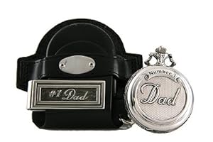 COLIBRI MEN'S MATCHING SILVER TONE # 1 DAD POCKET WATCH, BLACK LEATHER BELT HOLDER & MONEY CLIP SET** POLISHED-BRUSHED SILVER TONE CASE AND CHAIN** # 1 DAD ON FRONT OF CASE** SILVER DIAL** BLACK HOUR, MINUTE, AND SECOND HANDS** BLACK ROMAN NUMERAL AND WORD DAD HOUR MARKERS** 1-1/4" ROUND PERSONAL PICTURE FRAME ON INSIDE OF CASE** QUARTZ MOVEMENT** CASE DIAMETER 48MM** HELD IN BLACK CASE** COMES WITH # 1 DAD MONEY CLIP** MODEL # PWQ095258P** COMES IN ORIGINAL CASE** RETAIL: $70.00** SK...