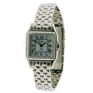 She will adore this elegant Colibri watch with 10 diamond. This beautiful watch features a square bezel with 10 genuine diamond, silvertone case and bracelet, bracelet with hidden deployment clasp, Swiss made movement and white dial with Roman numerial. The timepiece is present in a jewelrly gift box. 3 year limited warranty. This is a truly memorable gift that she will always remember!