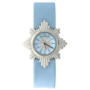 This formal dress watch from Lucien Piccard, with its blue satin band and star-burst face, has a hint of the ball coming to an end and the coach pulling up to the castle. Whether you see this Diamond Star as being from the day or the night sky depends on how you read the ending of fairy tales, but what isn't open to interpretation is the quality craftsmanship of this timepiece. It boasts a 23-millimeter stainless steel case and bezel, a blue mother-of-pearl dial, and stick indexes mark...