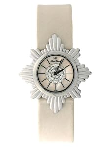 This formal dress watch from Lucien Piccard, with its beige satin band and star-burst face, has a hint of the ball coming to an end and the coach pulling up to the castle. Whether you see this Diamond Star as being from the day or the night sky depends on how you read the ending of fairy tales, but what isn't open to interpretation is the quality craftsmanship of this timepiece. It boasts a 38-millimeter stainless steel case and bezel, a beige mother-of-pearl dial, and stick indexes ma...