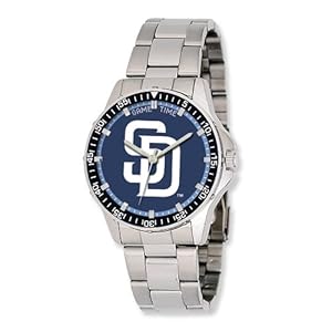 Mens MLB San Diego Padres Coach WatchSafety claspSilver-tone handsSilver-tone markersStainless steel bandStainless steel caseStainless steel caseback3 atm water resistance40mm caseDeployment buckleJapanese quartz movementMineral crystalWeigth: 1 GMThis product comes with a FREE Gift Box