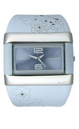 Reward yourself after a hearty workout and spruce up your couture with the Nike Merge Transit women's analog watch, a perfect match to your most contemporary casual and evening wear. As a centerpiece, it features a wide, artful strap with a cushy, comfortable white polyurethane underside and an ice blue leather top layer that's accented by a delightful melange of laser-etched paisley and filigree patterns small openings that reveal the white underside. It's joined by a one-piece hing...