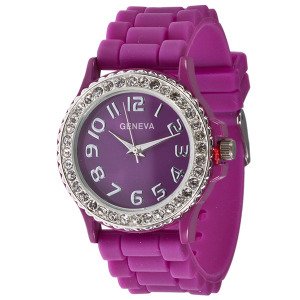 These beautiful and trendy watches are custom designed by Geneva with intricate details and personal attention to quality. Lead Free and safe soft band is in ceramic style. Color of face matches to the band. Face is surrounded with beautiful clear and sparkly rhinestones