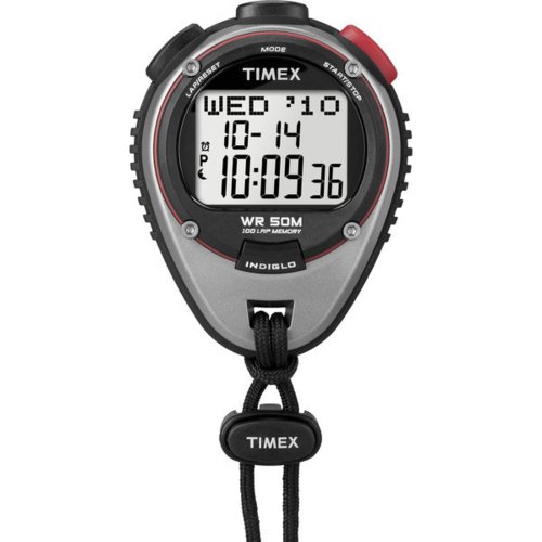 This ergonomic and easy-to-read stopwatch fits comfortably in the palm of your hand and has a 24-hour chronograph with pace, speed, and stroke rate calculations. It has a 100-lap workout memory that records your best lap, average lap, and total segment time as well as daily alarms that have a five-minute backup and a triple-mode countdown timer with countdown stop, countdown repeat, and countdown linkage. The rubberized grip fits comfortably in your hand while a generously long and adju...