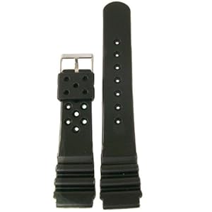 Watch band replacement for Seiko or other Dive Watches. This generic heavy duty rubber sport band measures 22mm and fits many Seiko and dive models. Also, can be used to convert 22mm stainless steel band into a rubber band. Rubber bands offer tear or rip resistance, water resistance, weather resistance and provides a sporty look. Comes with two replacement pins.